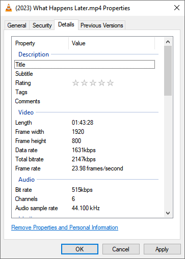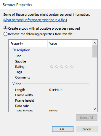 Found yourself with a video file that has the details locked? You may be tempted to click that “Remove properties and personal information”.