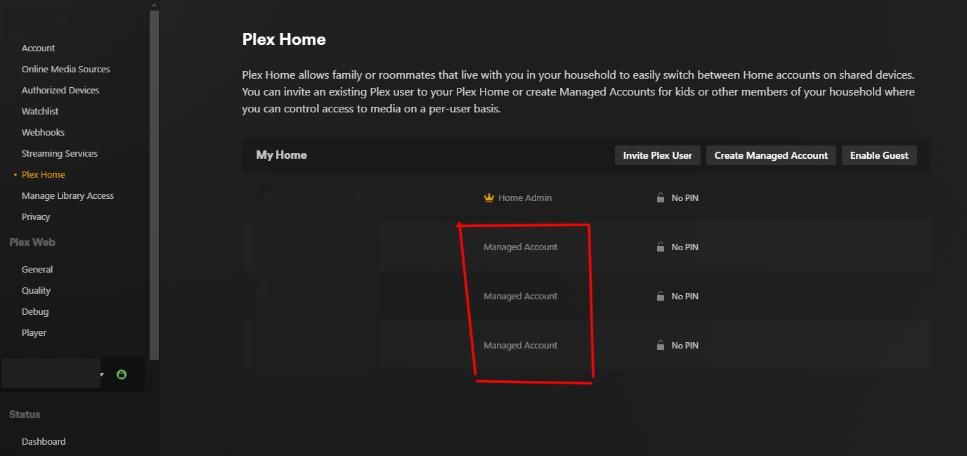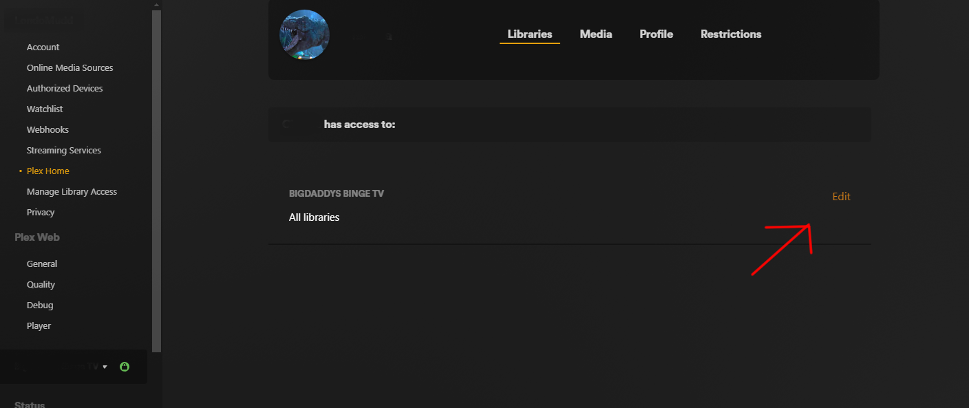 Now the next step is adding the Parental controls, As mentioned before You need to have Plex Pass to gain access to the Plex Home Feature that lets you have multiple accounts to manage.