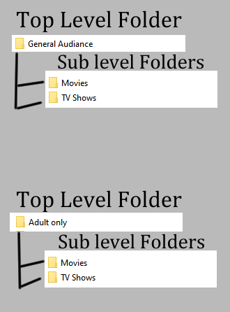 After that it's a matter of organization. First the folders. In order to allow for parental controls it's necessary to organize your content with the restrictions you want in mind.