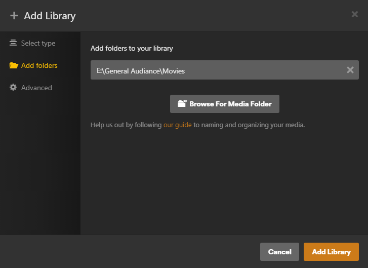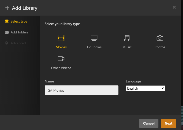 Next you need to add each category to plex. I recommend not adding the Top tier Folder if you want to separate the sub folders into their own menu.