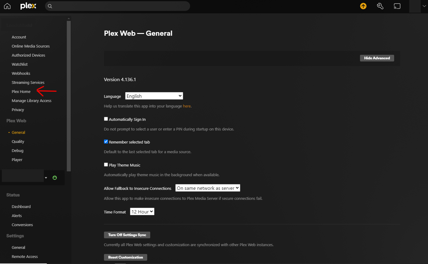 To get to the plex home Feature go to Settings icon. Top Right of your Plex Web Browser.