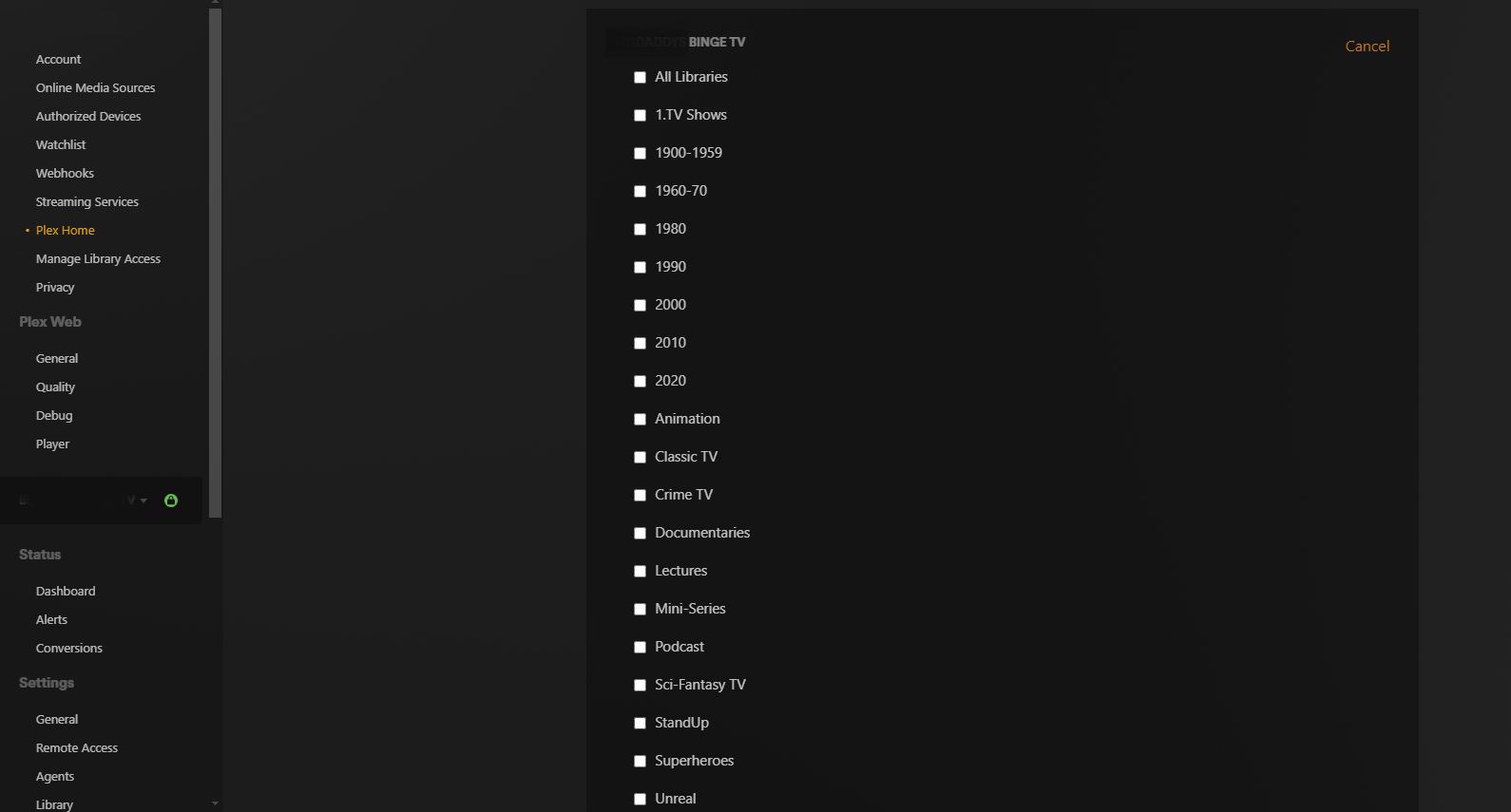 And you will see your list of categories. Place a check mark in all the allowed categories for that Plex Home account.
